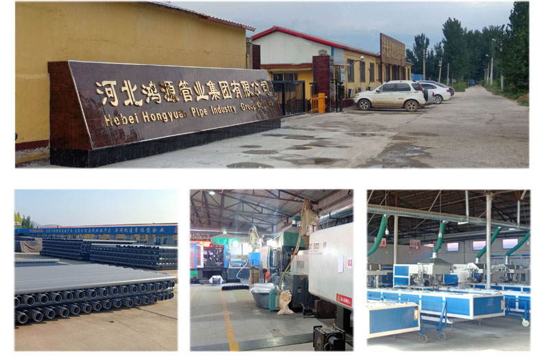 河北鴻源管業集團有限公司是專業生產塑料管材及自來水、農田節水用配套材料的專業廠家,現我公司為了方便與客戶的溝通建立了山西分公司。擁有注冊資金4880萬元,可為您提供自來水、農田管灌、噴灌、滴灌、遠距離供水工程的管材及配套設施。公司位于燕山腳下玉田縣彩亭橋開發區。擁有各種規格的塑料管材生產線26條,注塑機10臺。年產聚丙烯(PP)、聚乙烯(PE)硬聚氯乙烯(PVC—U)管材管件8000余噸。生產的"鴻源"牌聚丙烯、聚乙烯、硬聚氯乙烯系列管材全部采用真空定徑工藝成形,此工藝生產的管材具有管壁均,管質密度大,抗壓性能強等優點??缮a直徑Φ20-Φ400mm、使用壓力為0.25Mpa-1.6Mpa各種規格管材管件。